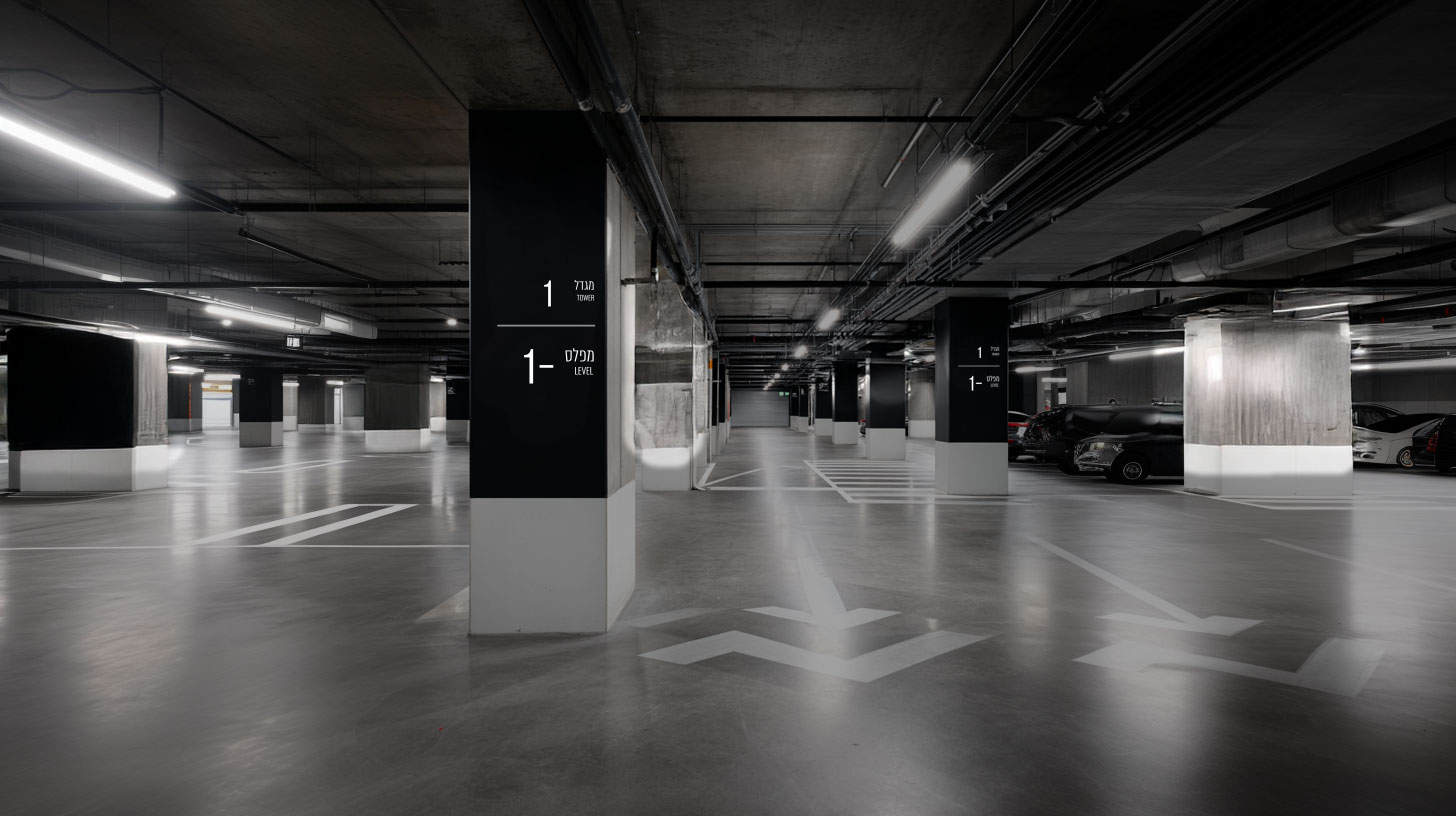 החשוב ביותר: השפה הוויזואלית מהדהדת את זהות Bavli Towers. החניון אינו תשתית מנותקת; הוא סביבה ממותגת. כל קו וכל משטח תורמים לתחושת סדר, רוגע ויוקרה שהדיירים מייחסים לביתם