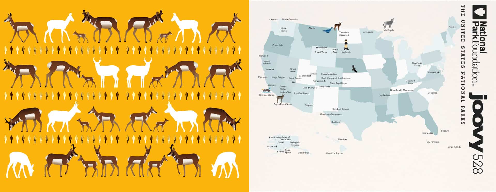 Joovy שיתפה פעולה עם National Park Foundation להשקת קולקציה לילדים בהשראת חיות בר הנמצאות בסכנת הכחדה. המשימה הייתה לקחת כל חיה בנפרד ולעטוף אותה בסט מוצרים ערכי וחינוכי. הסטודיו יצר סיפור ושפה מיתוגית ייחודית סביב כל חיה.