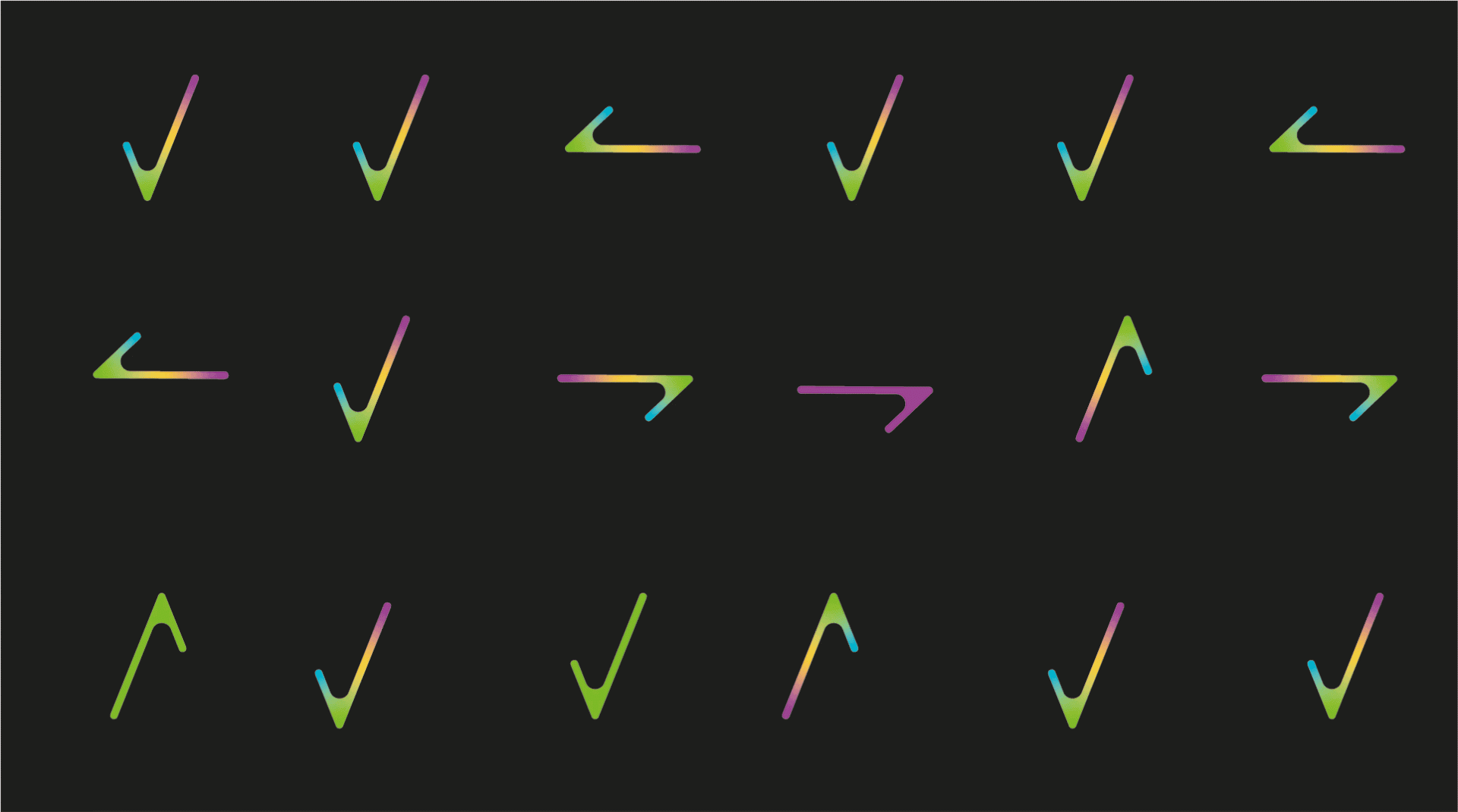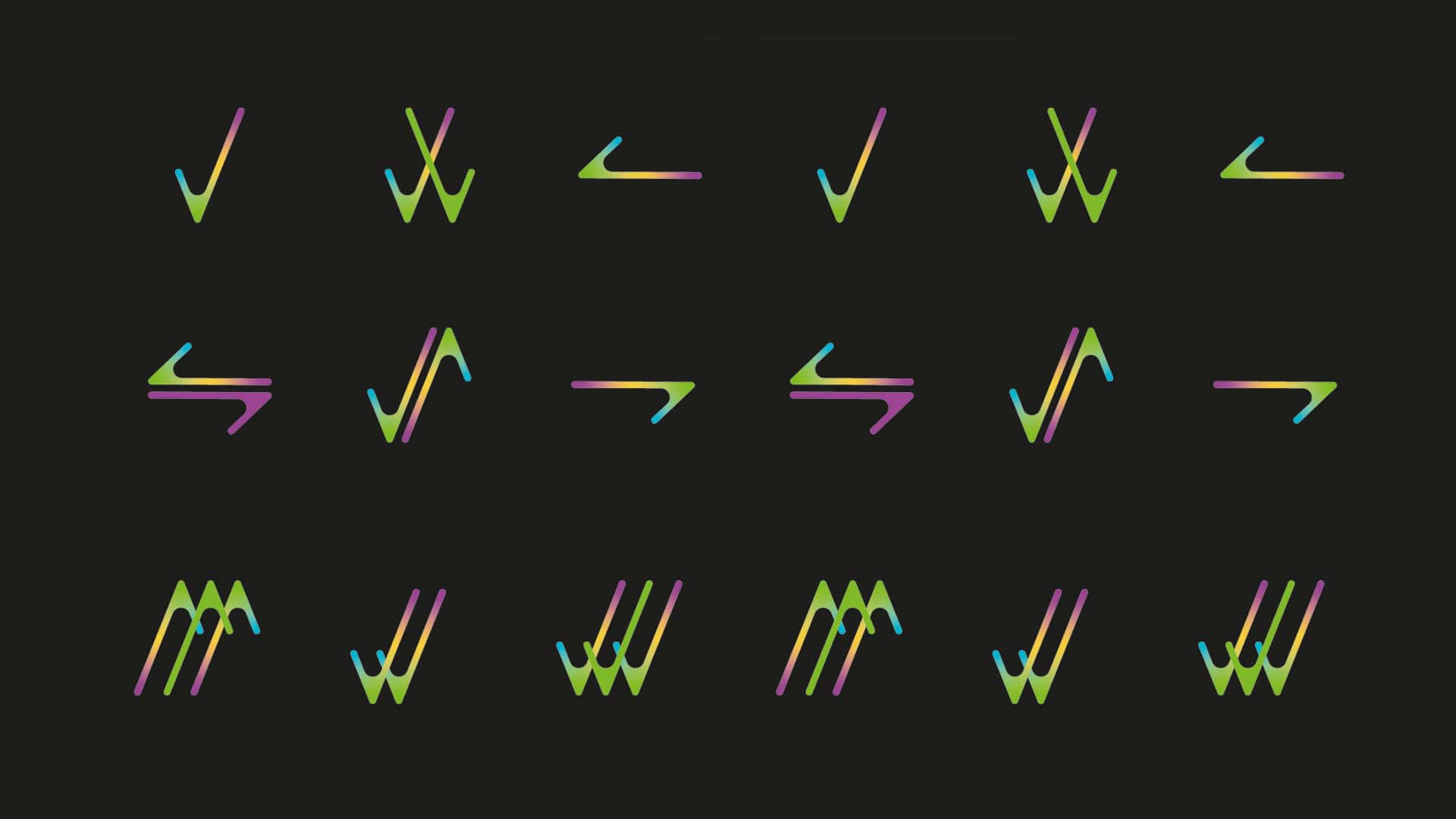 סמל שמבוסס על ה-V – שימוש באות כאייקון מזוהה.אייקוני בינלאומי מזוהה שמסמל הצלחה, סימבול שמייצר קונטציה חיובית. פיתחנו אייקונים נגזרים מהסמל, צבעי גרדיאנט חזקים בשילוב ירוק, סגול, כחול וצהוב — שילבו למעשה את הצבעוניות של כל חברות התקשורת השונות.
